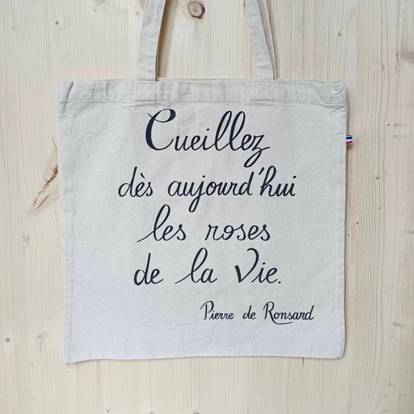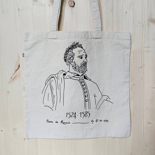 Le sac est sérigraphié des deux côtés, un côté Ronsard, un côté citation.