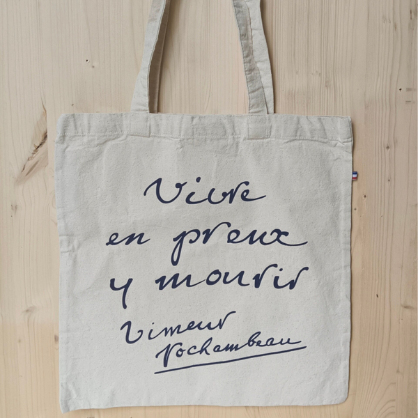 Le sac est sérigraphié des deux côtés, un côté Rochambeau, un côté citation.